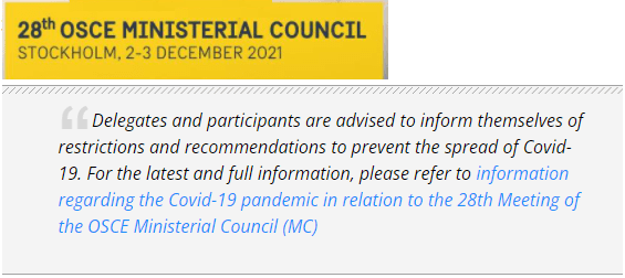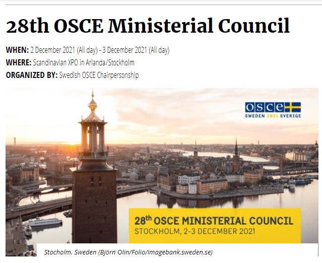 Den 25 november 2021 meddelade Sveriges Utrikesdepartementet att utrikesminister Ann Linde har bjudit in 56 utrikesministerkollegor till Stockholm för att delta i OSSE:s årliga utrikesministertoppmöte den 2–3 december 2021. Några stora namn har redan meddelat att det kommer bland andra USA:s utrikesminister Anthony Blinken och Rysslands utrikesminister Sergey Lavrov.