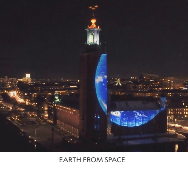 The Nobel Week Lights Stockholm 2021 has been during the entire Nobel Week 4 – 12 December for the second year. It is a combination an inspiration of stunning artworks lighting up the darkness in Stockholm, born out of Nobel Prize-awarded discoveries and laureates. This year’s artists and designers explore some of science’s biggest innovations and create stunning light art installations. “Earth from Space” is one of such installations.