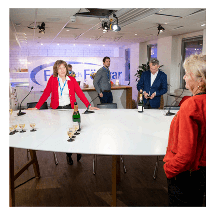 Därefter besökte dem fabriken där företagets produkter framställs. Alfa Lavals kärnteknologier är avgörande för nästan alla industrier för att spara energi, rent vatten och minska utsläppen. Alfa Laval är väletablerat i Frankrike sedan över 115 år och ett av de första svenska företagen att etablera dotterbolag i Frankrike. I dag har företaget fler än 1000 anställda på försäljningskontor och fem tillverknings-anläggningar i Frankrike.
