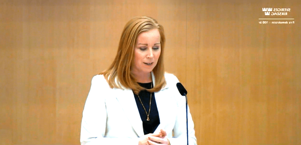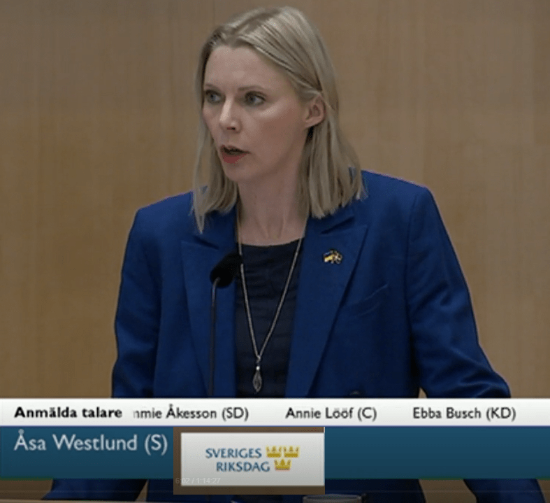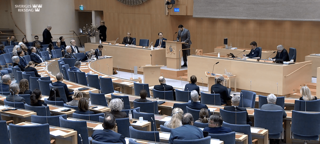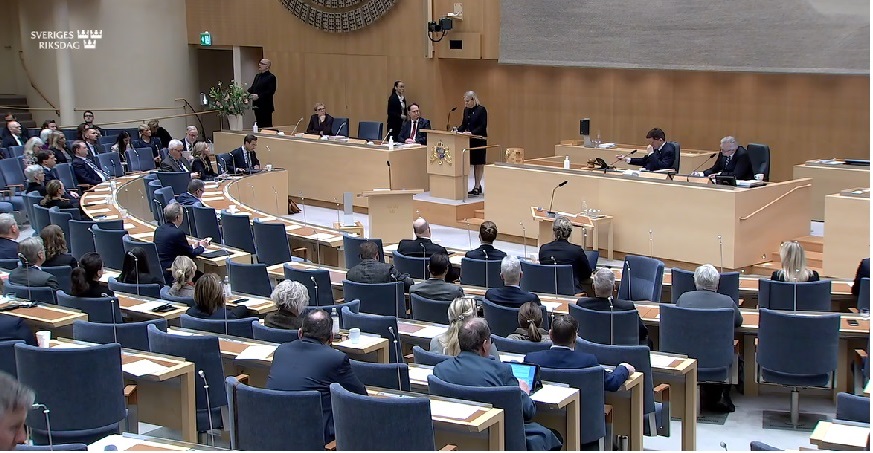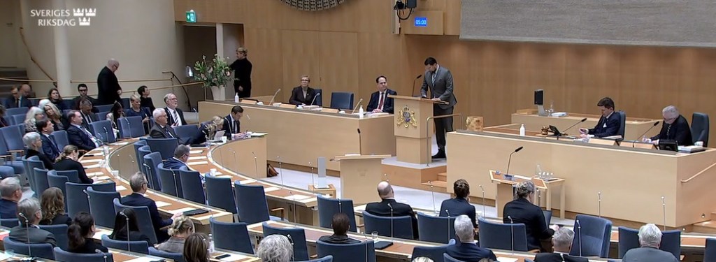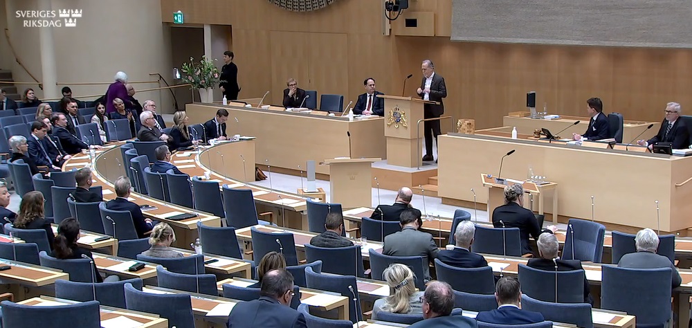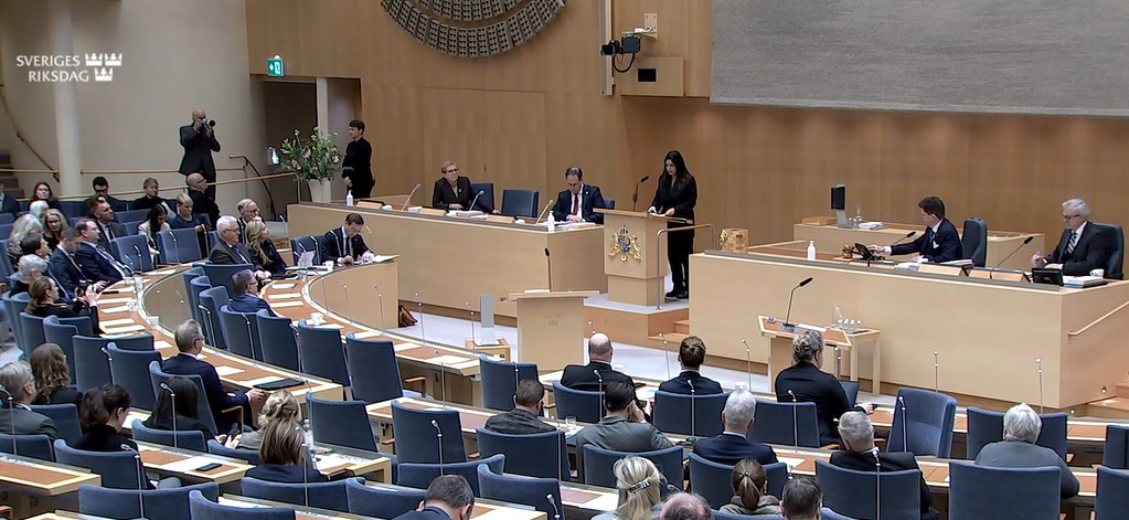 – Herr talman! Vi lämnar nu ett mörkt år bakom oss. Antalet sprängningar var det högsta någonsin. Rekordmånga utomstående dödades i gängvåldet. Trygghet har blivit vår tids stora frihetsfråga. Men problemen har förvärrats under ett decennium, och de tar tid att lösa. Även 2024 kommer att bli ett prövande år.