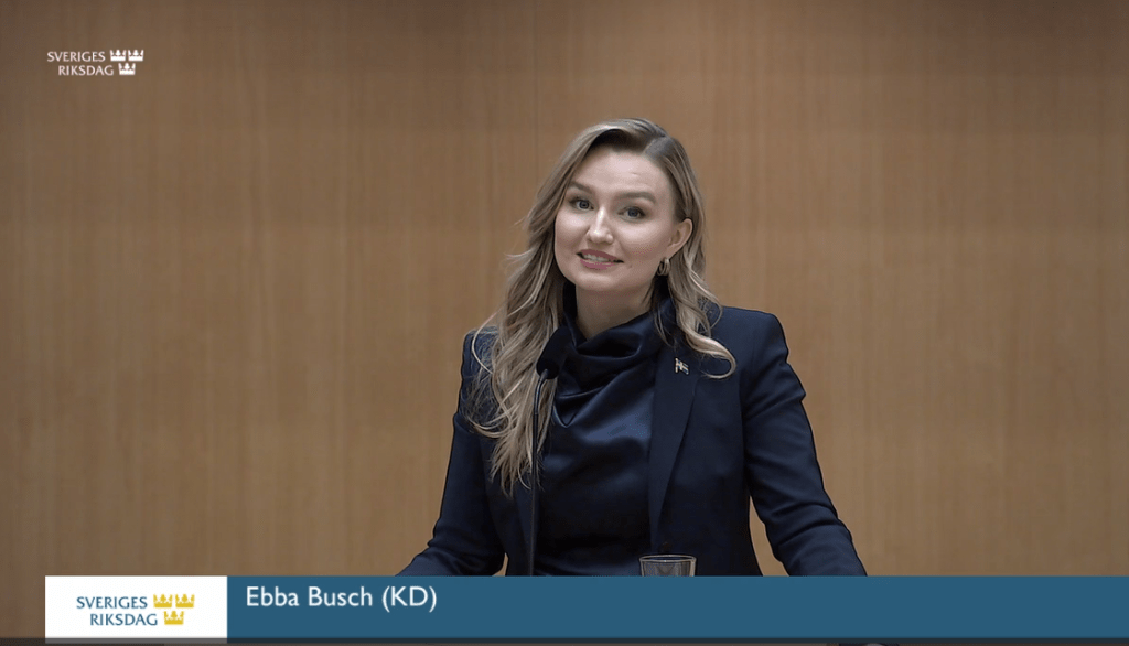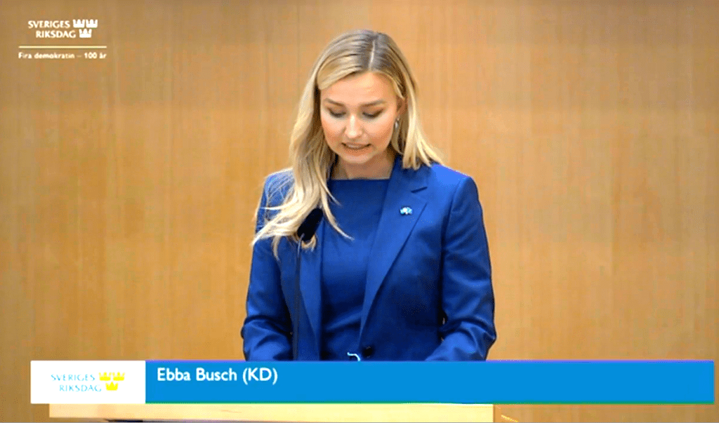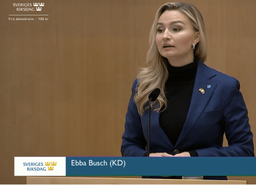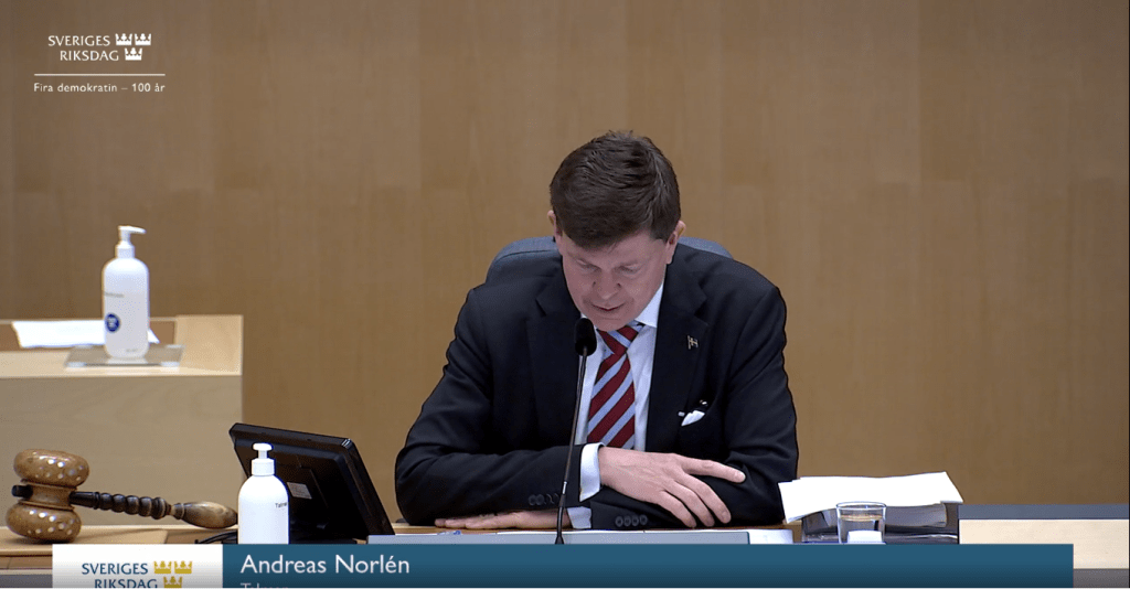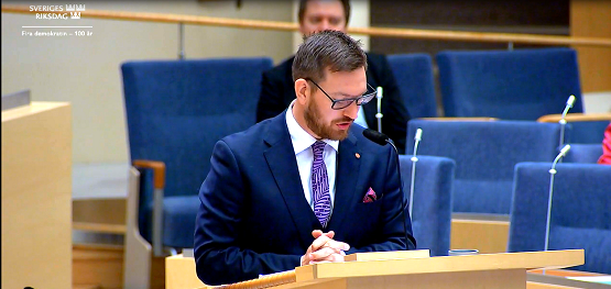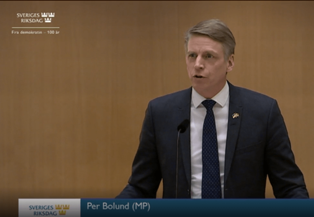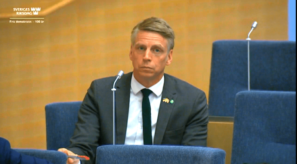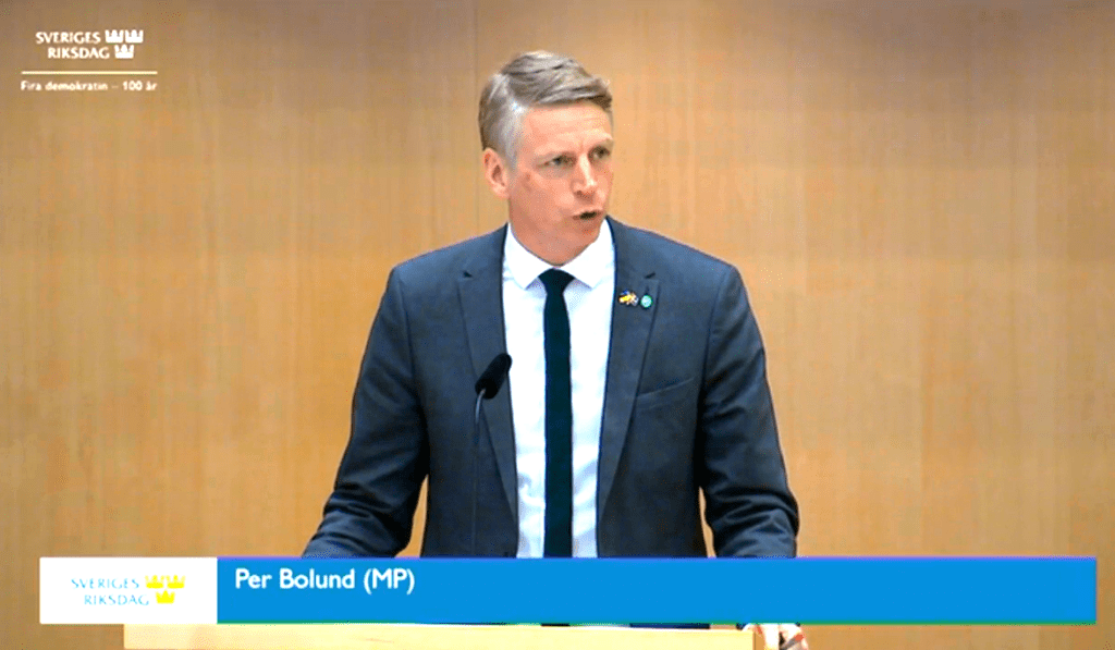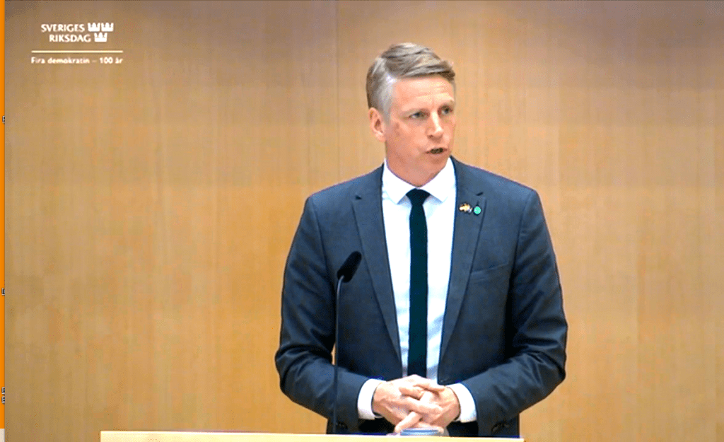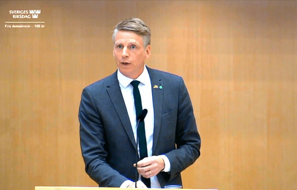 – Herr talman! Nyss försökte en splittrad vänsteropposition avsätta Sveriges klimat- och miljöminister Romina Pourmokhtari. Men omröstningen visade tvärtom att hon har riksdagens förtroende när hon lägger om den svenska klimatpolitiken. Romina Pourmokhtari är en skicklig och påläst minister. Jag är stolt över att just hon representerar Sverige på de stora internationella klimatkonferenserna och över att hon är den första klimatministern någonsin som har en trovärdig plan för hur Sverige ska nå nettonollutsläpp senast 2045.