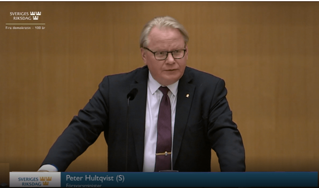 – Herr talman! Vi måste också stärka vår egen försvarsförmåga. Vår målsättning är att Sverige ska ha ett starkt folkförsvar, ett totalförsvar av svenska folket och för svenska folket. För oss socialdemokrater är det en självklarhet att vi alla ska vara beredda att ställa upp och försvara vårt land. Det var därför vi återinförde den värnplikt som alliansregeringen avskaffade. Vår militära kapacitet måste stärkas, och detta råder det bred enighet om i denna kammare. Men även det civila försvaret måste rustas. Det säger också regeringen men agerar tvärtom.