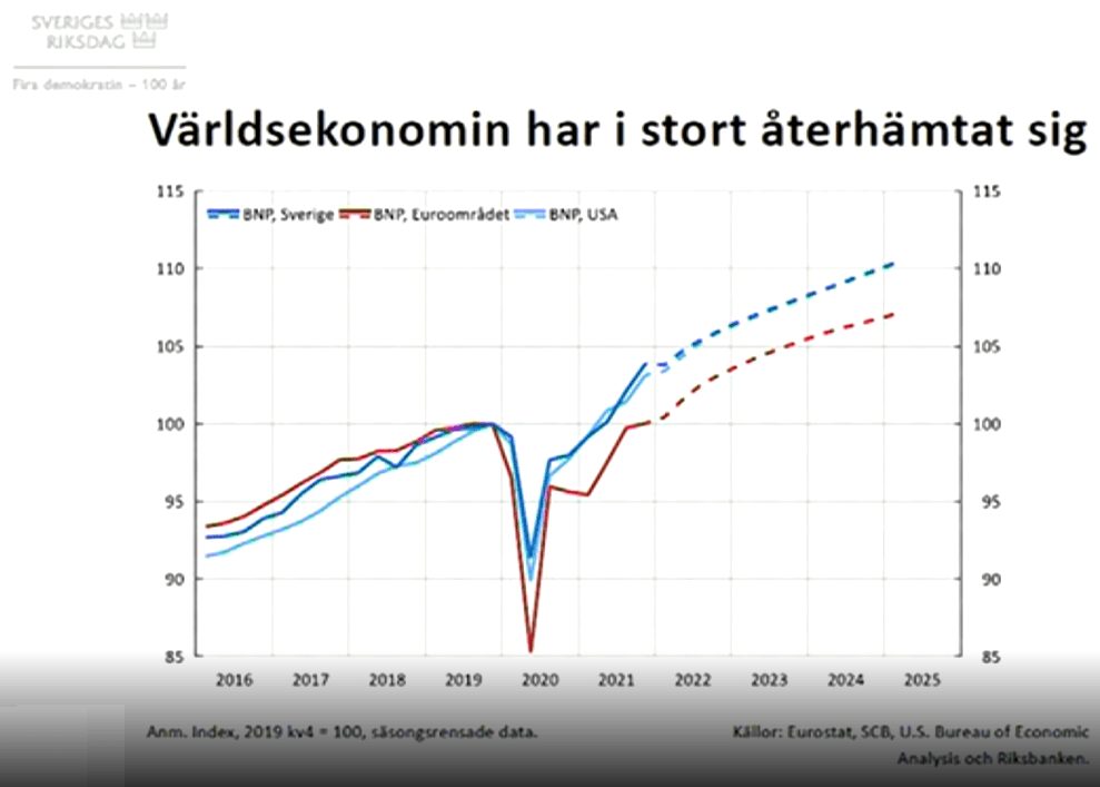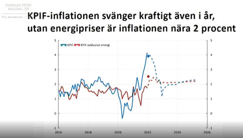 – Herr talman! Låt mig också peka på några av det nya årets ljuspunkter. När regeringen tillträdde var inflationen tvåsiffrig. Nu är den på väg ned. Segern är inte vunnen, men det är uppenbart att vår ekonomiska politik nu ger resultat.