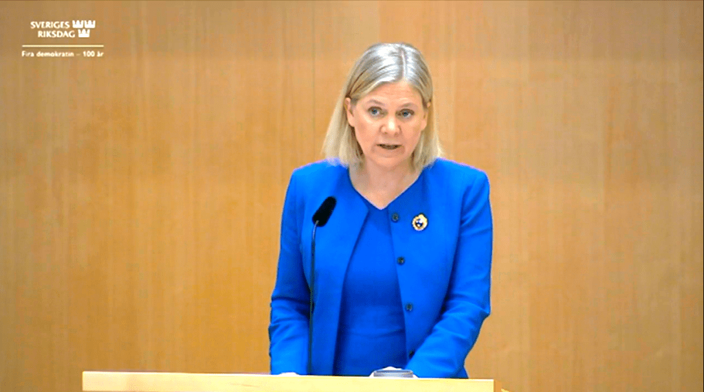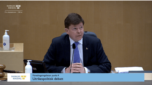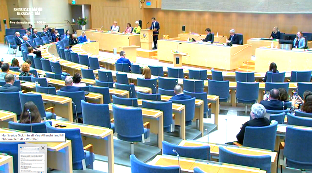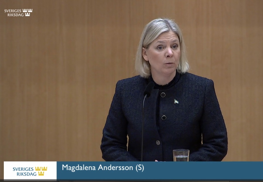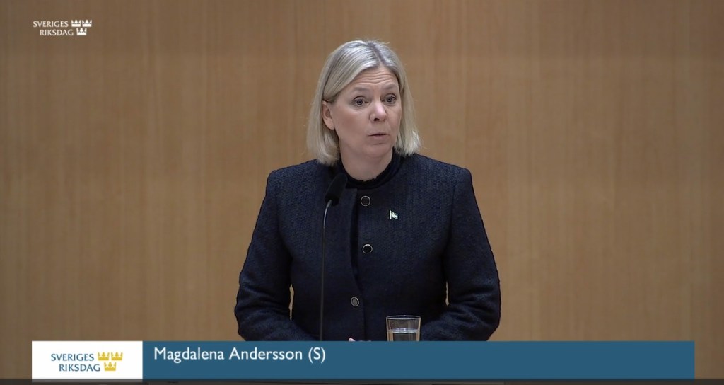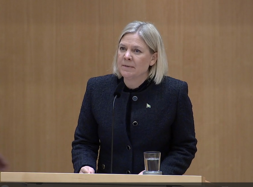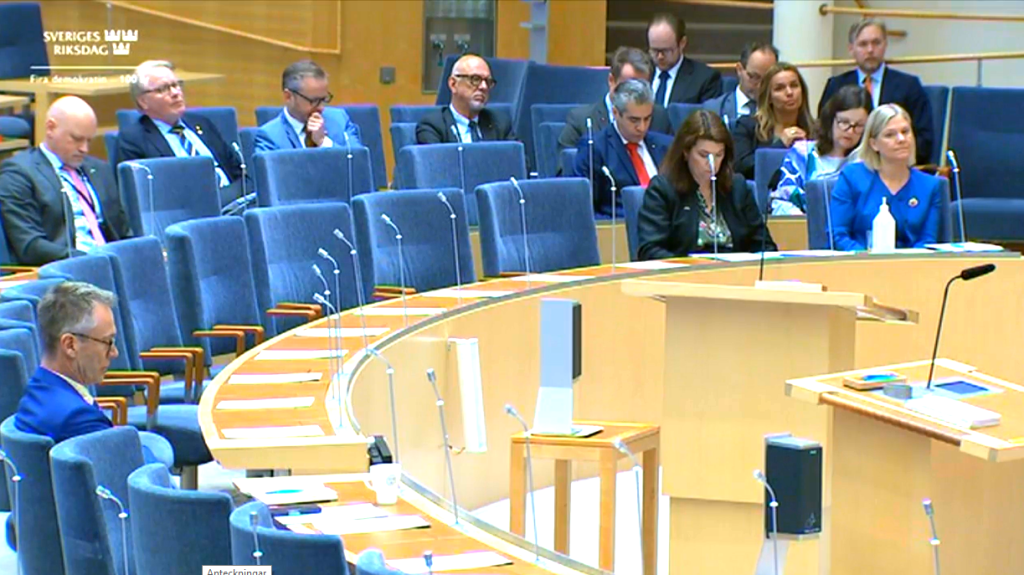 – Herr talman! Den viktigaste frågan för Sveriges säkerhet just nu är att vår Natoansökan slutförs. Nu är det hög tid för Turkiet och Ungern att ratificera den ansökan som lämnades in av min regering, för Sverige lever upp till Natos krav och till de åtaganden som vi gjort under processen – de åtaganden som gjorde att vi fick status som inbjudna och att 28 länder kunde ratificera oss rekordsnabbt.