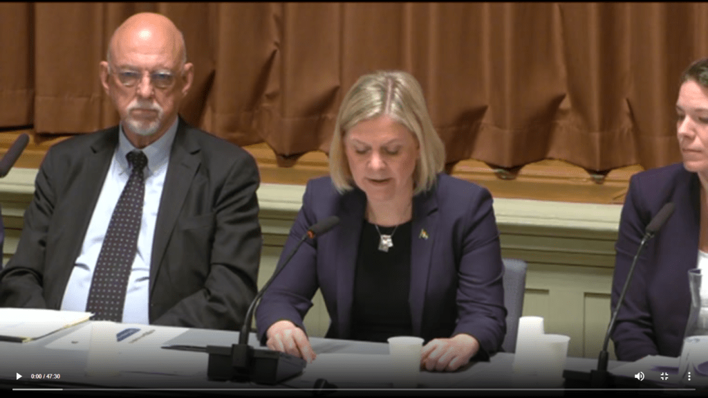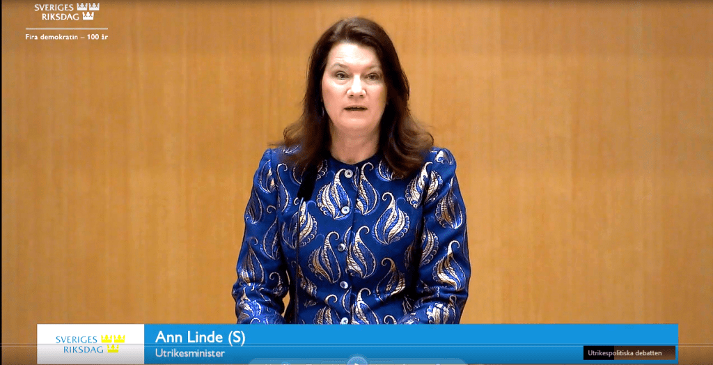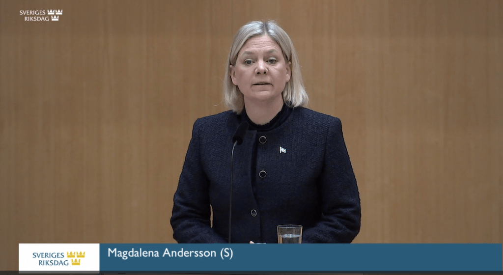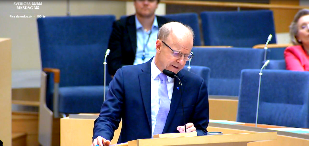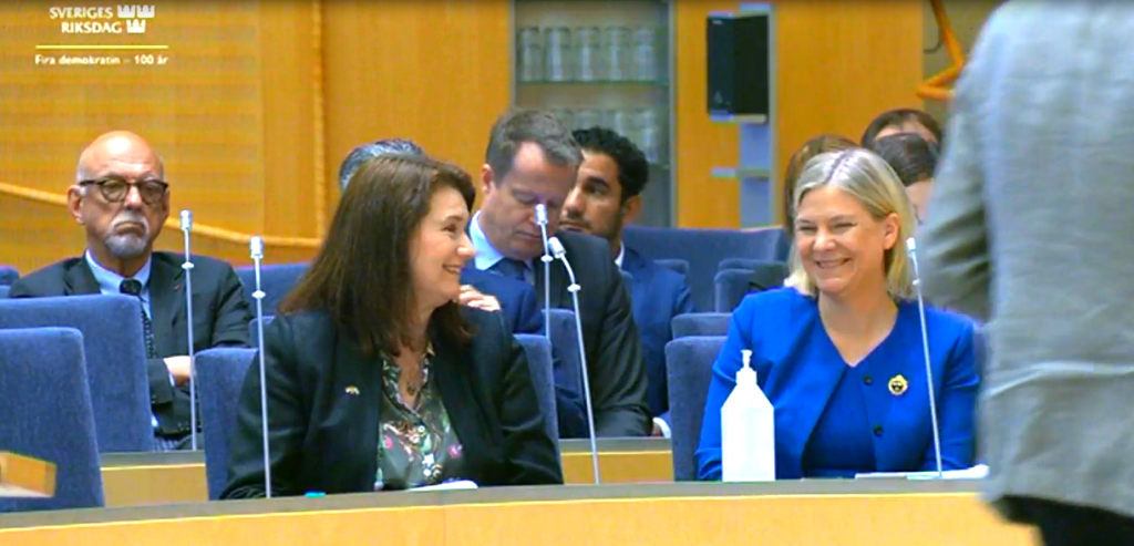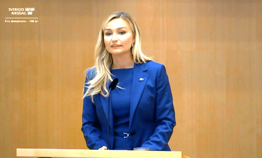 – Herr talman! Den viktigaste frågan för Sveriges säkerhet just nu är att vår Natoansökan slutförs. Nu är det hög tid för Turkiet och Ungern att ratificera den ansökan som lämnades in av min regering, för Sverige lever upp till Natos krav och till de åtaganden som vi gjort under processen – de åtaganden som gjorde att vi fick status som inbjudna och att 28 länder kunde ratificera oss rekordsnabbt.