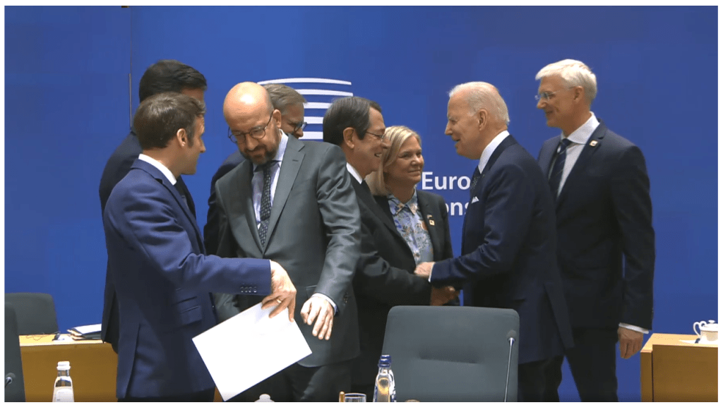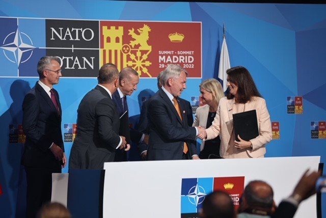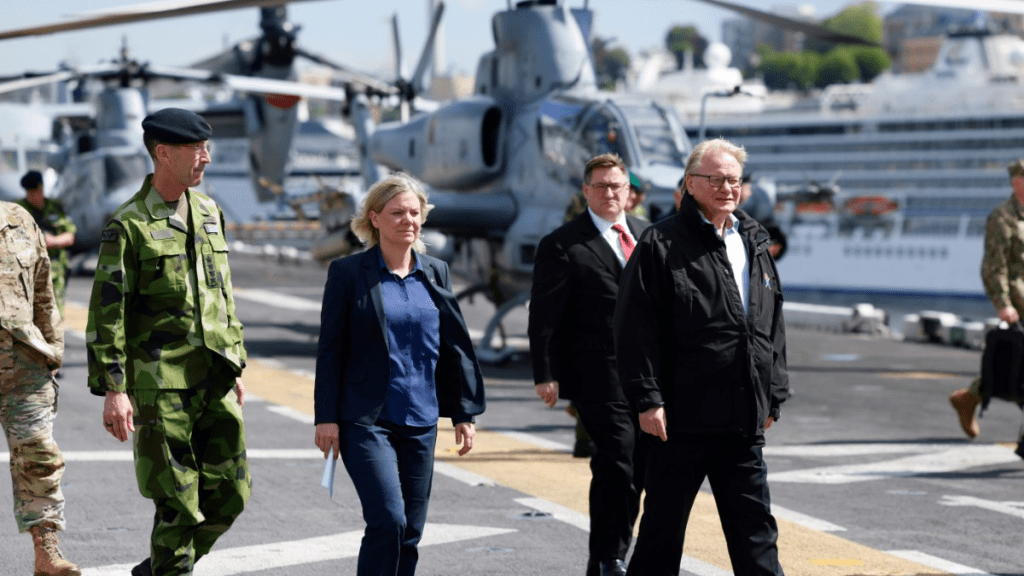 I riksdagen träffade han vår tidigare statsminister Magdalena Andersson, numera oppositionsledare i riksdagen. När hon var statsminister träffade hon President Macron flera gånger då Sverige bestämde sig för att ansöka om medlemskap i NATO. Som statsminister var Magdalena Andersson, och Ann Linde som utrikesminister, som arbetade mycket ihop med Natos generalsekreterare Jens Stoltenberg, USA:s President Joe Biden, Frankrikes President Emmanuel Macron och Storbritanniens dåvarande premiärminister Boris Johnson och gjorde att Sverige fick “Invitee Status” inom Nato, på väg att bli fullständig Natomedlemsnation.