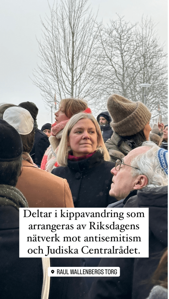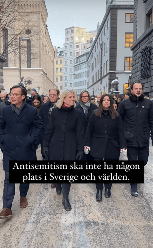 Riksdagens Nätverk Mot Antisemitism och Judiska Centralrådet anordnade en manifestation mot antisemitism där Statsminister Ulf Kristersson och Magdalena Andersson medverkade.