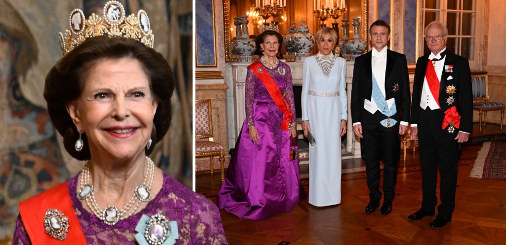 Frankrikes president Emmanuel Macron och kung Carl Gustaf anländer till galamiddagen på Stockholms slott som kungaparet håller för Frankrikes presidentpar. Franrikes president Emmanuel Macron och hans fru Brigitte är på ett två dagar långt statsbesök i Sverige. Foto: Jessica Gow / TT / Kod 10070Drottning Silvia och Brigitte Macron anländer till galamiddagen på Stockholms slott som kungaparet håller för Frankrikes presidentpar. Franrikes president Emmanuel Macron och hans fru Brigitte är på ett två dagar långt statsbesök i Sverige. Foto: Jessica Gow / TT / Kod 10070Prinsessan Victoria med Prins Daniel anländer till galamiddagen på Stockholms slott som kungaparet håller för Frankrikes presidentpar. Franrikes president Emmanuel Macron och hans fru Brigitte är på ett två dagar långt statsbesök i Sverige. Foto: Jessica Gow / TT / Kod 10070Landshövding i Stockholm län Anna Kinberg Batra med sin man David Batra anländer till Stockholms slottStatsminister Ulf Kristersson med hustrun Birgitta Ed anländer till Stockholms slott där kungaparet ger en galamiddag för Frankrikes presidentpar. Franrikes president Emmanuel Macron och hans fru Brigitte är på ett två dagar långt statsbesök i Sverige. Foto: Jessica Gow / TT / Kod 10070Tidigare statsminister och Socialdemokraternas numera partiledare Magdalena Andersson med sin man Richard Friberg anländer till Stockholms slott där kungaparet ger en galamiddag för Frankrikes presidentpar. Franrikes president Emmanuel Macron och hans fru Brigitte är på ett två dagarlångt statsbesök i Sverige. Foto: Jessica Gow / TT / Kod 10070Vänsterpartiets partiledare Nooshi Dadgostar och Martin Westergren anländer till Stockholms slott där kungaparet ger en galamiddag för Frankrikes presidentpar. Franrikes president Emmanuel Macron och hans fru Brigitte är på ett två dagar långt statsbesök i Sverige. Foto: Jessica Gow / TT / Kod 10070Miljöpartiets språkrör Daniel Helldén och journalisten Kristina Hanson Granqvist anländer till Stockholms slott där kungaparet ger en galamiddag för Frankrikes presidentpar. Frankrikes president Emmanuel Macron och hans fru Brigitte är på ett två dagar långt statsbesök i Sverige. Foto: Jessica Gow / TT / Kod 10070Landshövding i Stockholm län Anna Kinberg Batra och David Batra anländer till Stockholms slott där kungaparet ger en galamiddag för Frankrikes presidentpar. Foto: Jessica Gow / TT / Kod 10070Utrikesminister Tobias Billström (M) med sin fru Sofia Billström anländer till Stockholms slott där kungaparet ger en galamiddag för Frankrikes presidentpar. Frankrikes president Emmanuel Macron och hans fru Brigitte är på ett två dagar långt statsbesök i Sverige. Foto: Jessica Gow / TT / Kod 10070Bistånds- och utrikeshandelsminister Johan Forssell (M) och fru Kristine Forssell anländer till Stockholms slott där kungaparet ger en galamiddag för Frankrikes presidentpar. Frankrikes president Emmanuel Macron och hans fru Brigitte är på ett två dagar långt statsbesök i Sverige. Foto: Jessica Gow / TT / Kod 10070Linda Staaf tillsammans och ÖB Micael Bydén anländer till Stockholms slott där kungaparet ger en galamiddag för Frankrikes presidentpar. Frankrikes president Emmanuel Macron och hans fru Brigitte är på ett två dagar långt statsbesök i Sverige. Foto: Jessica Gow / TT / Kod 10070Muharrem Demirok, Centerpartiets partiledareEbba Busch KDs partiledare