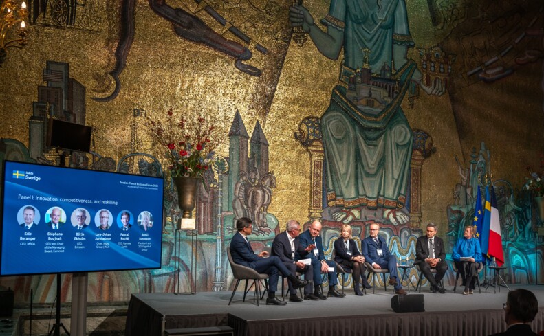 Den andra dagen av president Macrons statsbesök började med att Kungen och presidenten deltog i ett näringslivsseminarium – “Accelerating Europe’s Competitiveness” i Stockholms stadshus, som arrangerades av Business Sweden. Cirka 200 representanter från det svenska och franska näringslivet samlades vid seminariet.