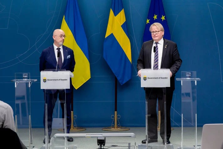 Tisdag den 14 december höll försvarsminister Peter Hultqvist en pressträff tillsammans med Ukrainas försvarsminister Oleksii Reznikov med anledning av hans, Reznikovs besök i Sverige.